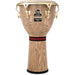 This ancient African instrument has become a world percussion favorite because of the extraordinary array of tones it produces. The Giovanni Djembe is beautifully crafted of fine ash in the traditional shape and is accented by a fabric band decorating the waist of the drum. A clear finish brings out the vivid grain of the wood and enhances the drum's frequency range. The select goatskin head is chosen for its resonance and tonal diversity. A Comfort Curve II rim makes playing easy on the hands.