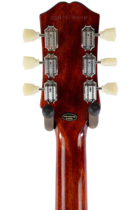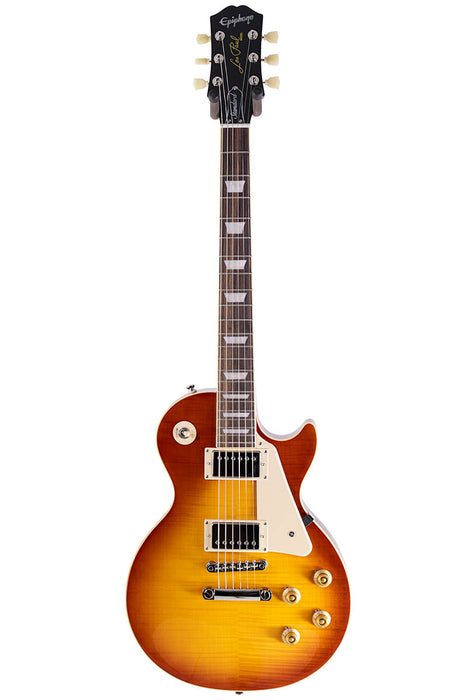 Epiphone’s Inspired by Gibson Collection proudly presents the Les Paul Standard 50s! This guitar lovingly recreates the feel and tone of the 1950s-era Les Pauls. Epiphone’s long friendship with Mr. Les Paul began in 1940 when Les built one of the world’s first solidbody electric guitars while working nights at the original Epiphone factory in Manhattan. Les’ first solidbody guitar, nicknamed “the Log,” would go on to inspire the Les Paul Standard, which many consider the greatest electric guitar ever made. This guitar is crafted with a mahogany body, maple cap with AAA flame maple veneer, bound ’59 Rounded Medium C-shaped mahogany neck with long neck tenon, laurel fretboard with classic trapezoid inlays, Epiphone’s Vintage Deluxe tuners, a pair of critically acclaimed Epiphone Probucker humbuckers, and gold Top Hat knobs with dial pointers. This Epiphone Inspired by Gibson Original model also has the Kalamazoo headstock, Graph Tech nut, era-appropriate wiring, and CTS pots. A premium gig bag is also included.