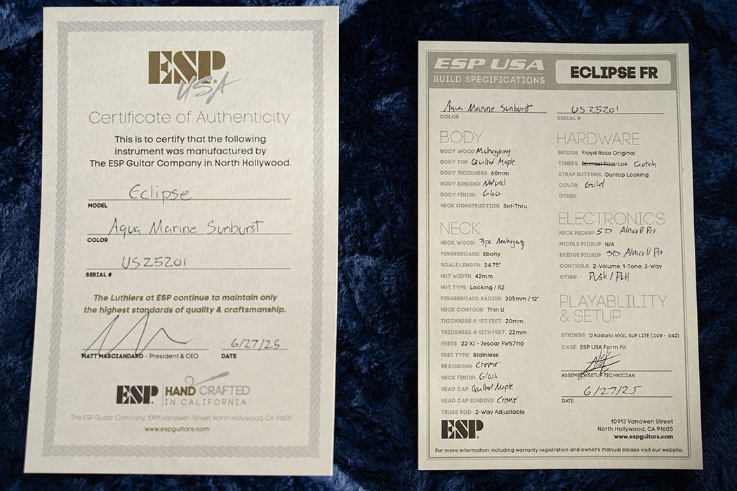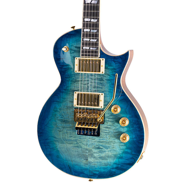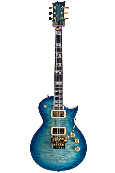 ESP USA has an incredibly skilled team of skilled and acclaimed luthiers making instruments that really turn heads. The Eclipse FR is an modern single cut guitar that packs a serious punch. With features including a stunning quilted maple top, 22 xtra jumbo frets, Floyd Rose, and Seymour Duncan pickups, this guitar is ready to rock. Top it all off with a stunning Aqua Marine Sunburst finish, this guitar looks as good as it sounds. This Eclipse is an excellent addition to any guitarists' collection.