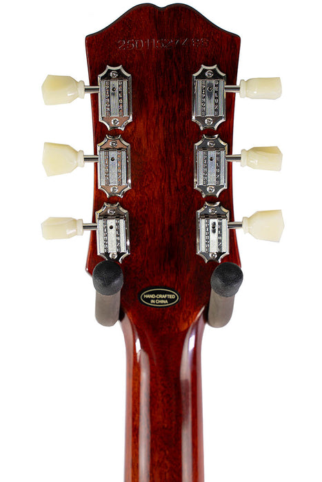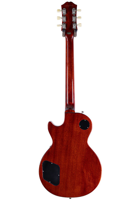 Epiphone’s Inspired by Gibson Collection proudly presents the Les Paul Standard 50s! This guitar lovingly recreates the feel and tone of the 1950s-era Les Pauls. Epiphone’s long friendship with Mr. Les Paul began in 1940 when Les built one of the world’s first solidbody electric guitars while working nights at the original Epiphone factory in Manhattan. Les’ first solidbody guitar, nicknamed “the Log,” would go on to inspire the Les Paul Standard, which many consider the greatest electric guitar ever made. The guitar is crafted with a mahogany body, maple cap (AAA veneer on figured tops), bound 50s shaped mahogany neck with long neck tenon, Indian laurel fingerboard with classic trapezoid inlays, Epiphone's Vintage Deluxe tuners, a pair of critically acclaimed Epiphone Probucker humbuckers, and gold Top Hat knobs with dial pointers. Available in Metallic Gold, Vintage Sunburst, and Heritage Cherry Sunburst full-gloss finishes. This Epiphone Inspired by Gibson Original model also has the Kalamazoo headstock, a rolled neck for a comfortable feel, Graph Tech NuBone nut, era-appropriate wiring, and CTS pots.